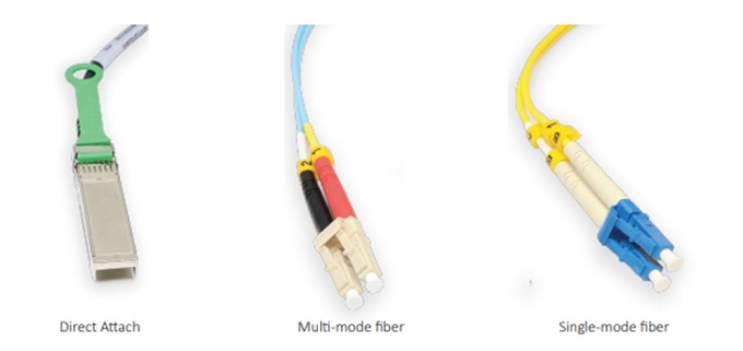 첫 번째이자 가장 저렴한 옵션은 구리 기반 패시브 솔루션으로 싱글 케이블 길이는 1m~5m이다. 두 번째 옵션은 QSFP28 멀티 모드 파이버 모듈과 트랜시버 및 LC-LC 멀티 모드 파이버 케이블을 사용하며 1m~100m 사용이 가능하다. 세 번째 옵션은 QSFP28 싱글 모드 파이버 모듈과 트랜시버 및 LC-LC 단일 모드 파이버 케이블을 사용하며 1M~10Km까지다.
