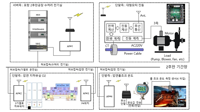포항과 광양 제철소에서 고압케이블 접속부 진단 및 밀폐 공간 산소농도 계측 시범서비스 중인 ‘산업현장 IoT 플랫폼 기반 진단 시스템’에는 ‘산업용 고신뢰 무선 IoT 네트워크 기반 서비스 요구사항 및 참조 구조’표준이 적용되었다.