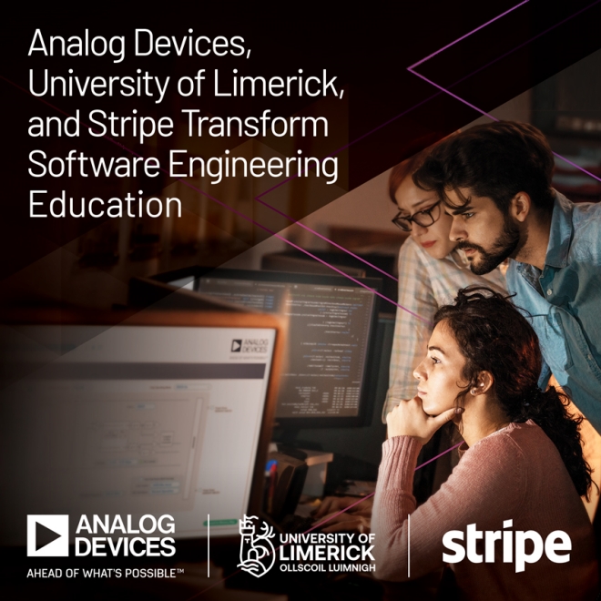 아나로그디바이스는 아일랜드의 리머릭 대학교 및 경제 인프라 기술 기업인 스트라이프를 포함한 유수의 기업과 협력해 ‘몰입형 소프트웨어 엔지니어링(Immersive Software Engineering, ISE)’이라고 하는 세계적인 컴퓨터 과학 교육 프로그램을 출범한다고 밝혔다.