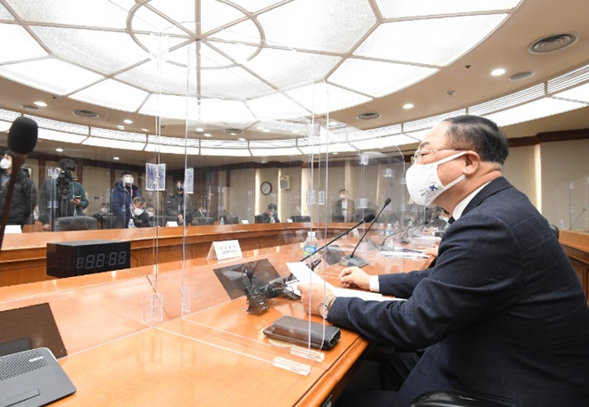 홍남기 경제부총리가 한국수출입은행에서 열린 '제5차 혁신성장 BIG3 추진회의'를 주재하고 있다. (출처 : 기획재정부)