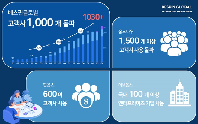 베스핀글로벌이 자사의 클라우드 딜리버리 고객사가 1천 개를 돌파했다고 10일 밝혔다.