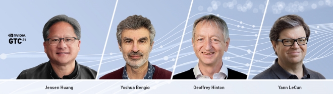 ▲GTC 2021에 엔비디아 CEO 젠슨 황과 더불어 요수아 벤지오, 제프리 힌튼, 얀 르쿤 등 AI 분야의 전문가가 참석한다