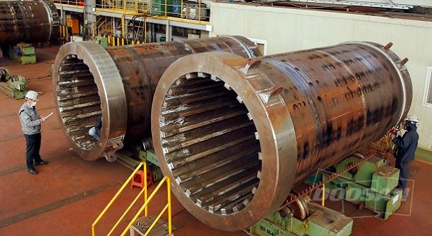 ▲미국 TMI 원자력발전소용 캐스크 제작 공정 중 모습 <출처 : 두산중공업>