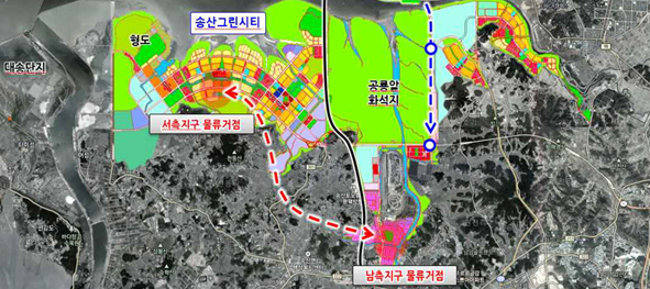 한국수자원공사(K Water)는 화성 송산그린시티를 대상으로 지구 특성을 반영하여 남측지구는 미래운송 클러스터 등 산업물류 기능에 초점을 두고, 서측지구는 주거, 상업 등 복합개발을 고려하여 환경친화형 물류체계 구현에 중점을 두어 계획을 수립할 예정이다.