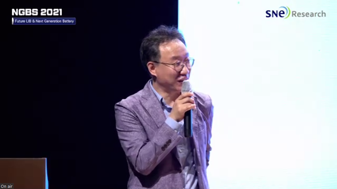 ▲정동욱 삼성SDI 그룹장이 25일 코엑스에서 열린 NGBS 2021 배터리 기술 세미나에서 발표하고 있다. (출처 : SNE리서치)