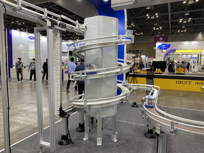 한편, 부스 한켠에선 Flexible Conveyor System(플렉서블 컨베이어 시스템)과 Slide Grip Conveyor System, Spiral Conveyor System 등도 수직, 수평으로 일사불란하게 화물을 날랐다. 케이티에스의 컨베이어는 모듈식 설계를 채택해 유연성이 뛰어나 식품 산업, 포장 산업, 자동차 산업 등 거의 모든 생산 환경에 적용될 수 있다.