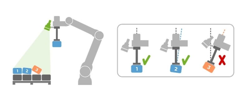 4축 로봇을 사용해 디팔레타이징 프로젝트 및 기타 애플리케이션을 효과적으로 지원하기 위해 추가 기능인 수직 피킹을 지원한다. 이번 업데이트는 수직으로 기울일 수 없는 엔드 이펙터의 한계를 고려한다. 동시에 로봇 도구가 선택 성공을 저해하지 않고 약간의 기울기를 견딜 수 있는 가능성을 염두한다.
