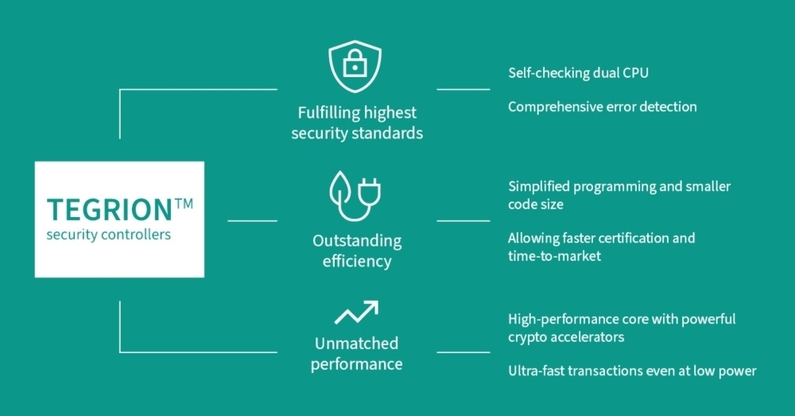 이 제품군은 새로운 인티그리티 가드 32 보안 아키텍처와 고급 Arm v8-M 명령어 세트를 통합해 향상된 디바이스 성능을 달성한다. TEGRION 보안 컨트롤러는 구현이 쉽고, 디자인 인 및 출시 기간을 빠르게 하며, 긴 제품 라이프사이클을 지원한다. 폭넓은 구성의 TEGRION 보안 컨트롤러 제품군은 스마트 홈, 스마트 모빌리티, 스마트 인더스트리에서부터 결제, 신분증에 이르기까지 다양한 애플리케이션을 지원한다.