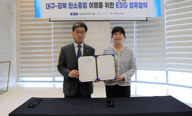 ![4월 5일 호텔수성 수성스퀘어에서 개최된 한국부동산원-한국에너지공단, 에너지 부문 환경ㆍ사회ㆍ투명 경영(ESG) 실천을 위한 업무협약 행사사진(왼쪽 마정호 한국부동산원 대구경북지역본부장, 오른쪽 손명임 한국에너지공단 대구경북지역본부장) [사진제공=한국부동산원]](http://www.hellot.net/data/photos/20240415/art_17126221024419_ca9d40.png)