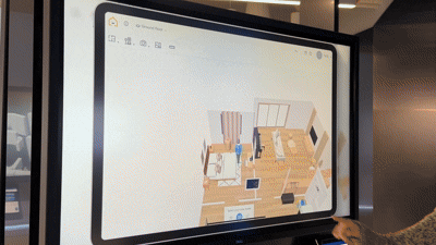 화면에는 거실·주방·침실이 3D 모델로 구현되고, 소파·테이블·수납장 같은 가구가 배치된 화면이 나타났다. 사용자는 재질·색상·조명·배치 등 요소에 대한 조합을 바꿔보며 실시간으로 분위기의 변화를 확인할 수 있다.