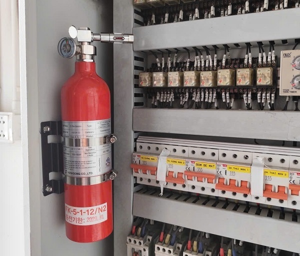 육송의 소공간 자동소화용구는 배전반·분전반·제어반 등 전기 설비 내부 화재를 자동으로 진압하는 장치다. 화재가 감지되면 유리벌브가 파열되며 노즐이 개방되고, 가압된 가스소화약제(HFC-125)가 분사돼 3~5초 이내에 초기 진화가 가능하다. 화재나 오작동으로 유리벌브가 파손될 경우 접점신호를 발신하는 리미트 스위치 기능도 갖춰 원격 모니터링 체계 구축이 가능하다. 이는 공장·데이터센터·빌딩 설비 등 연속 운영이 필수적인 산업 현장에서 활용도가 높다.