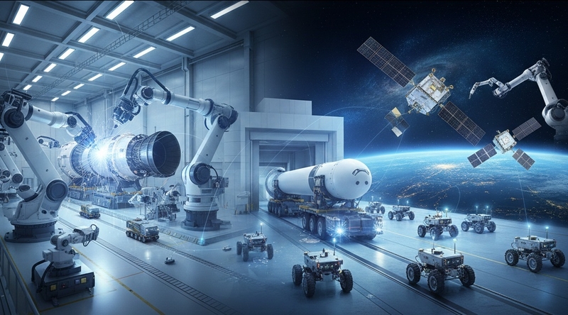 정리하면, 로봇의 무대는 크게 둘이다. 지상에서 로켓과 위성을 찍어내는 공장, 그리고 궤도 위에서 임무를 수행하는 우주 공간이다. 지상에서는 이미 로켓·위성 제조 공정에 로봇이 깊게 관여한다. 액체 엔진, 탱크, 위성 구조체를 반복해서 찍어내는 공장일수록 이러한 비중이 커질 전망이다. 이 가운데 산업용 로봇, 협동 로봇, 비전 검사 시스템 등이 대거 활용된다. 누리호급 발사체와 중소형 위성을 정기적으로 쏘려면, 이런 로봇 공장이 사실상 K-우주 생산 인프라가 된다.
