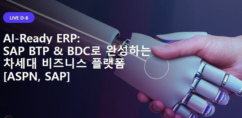 이번 웨비나에서는 SAP BTP와 SAP Business Data Cloud가 제시하는 AI-Ready 데이터 제품 전략도 함께 다룬다. 산재된 데이터를 단일 플랫폼에서 통합하고 거버넌스와 실시간 분석을 수행함으로써 생성형 AI, RAG, Agentic AI까지 자연스럽게 비즈니스 프로세스 전반에 연결할 수 있는 환경을 제공한다.