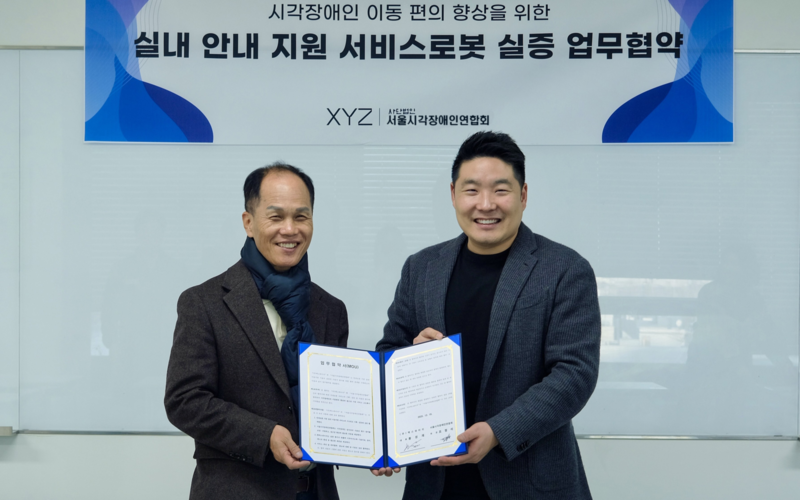 엑스와이지가 서울시각장애인연합회와 파트너십을 체결했다. 골자는 시각장애인의 이동 편의와 접근성 향상을 위한 실내 안내 지원 서비스 로봇 개념증명(PoC) 추진이다.