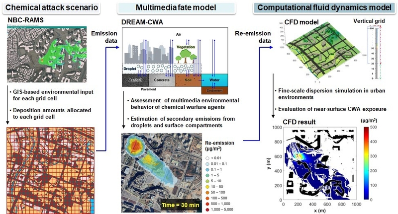 최성득 교수는 “화학무기가 살포된 이후 공기, 액적, 토양, 아스팔트, 콘크리트, 도심 하천 등을 거치는 전 과정을 분석하는 다매체 환경모델은 국내는 물론 국제적으로도 유례가 없는 기술”이라고 설명했다.