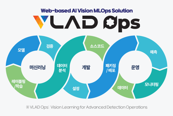 VLAD Ops는 데이터 모델링, 학습, 배포, 모니터링 및 운영까지 머신러닝 생명 주기 전반을 지원해 체계적으로 관리가 가능한 웹 기반 통합 AI 비전 솔루션이다. 데이터 셋에 포함된 이미지를 검색하고 어노테이션을 편집할 수 있는 레이블링(Labeling) 도구로, 사용자 친화적이며 다양한 작업 환경을 프로젝트 단위로 통합 관리 및 운영이 가능한 점이 장점이다.