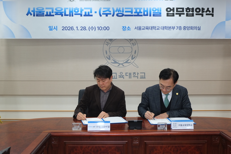 씽크포비엘과 서울교대는 28일 오전 서울교대 대학본부 중앙회의실에서 ‘AI 신뢰성’ 역량 강화 목적의 교육‧인력 양성 및 관련 사업에 관한 상호 교류‧협력 업무협약(MOU)을 체결했다. 행사에는 박지환 씽크포비엘 대표와 장신호 서울교대 총장이 양측을 대표해 참석했다.