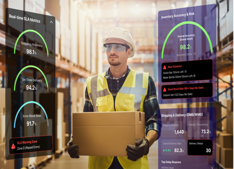 작업자 현황과 작업 이력을 통합 관리하는 물류 관제 기능도 함께 소개된다. 운영 데이터를 실시간으로 분석해 작업 흐름을 직관적으로 파악할 수 있으며, 실시간 영상 공유 기반의 원격 현장 지원 기능을 통해 현장 문제를 즉각적으로 해결하는 운영 구조를 제시한다.