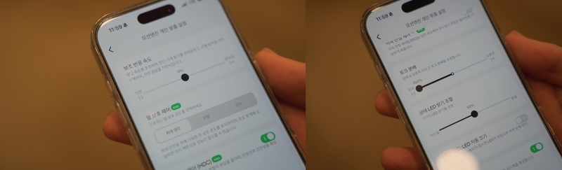 이어 투명 모드는 보조 기능을 끈 상태인데, 장비 개입 없이 착용감과 동작 리듬을 확인하는 기준점 역할을 한다. 끝으로 피트니스 모드는 보조 중심이 아니라 운동 목적의 저항 중심 모드다. 애플리케이션 화면에서도 운동 강도에 맞춘 저항 조절 개념이 강조된다.