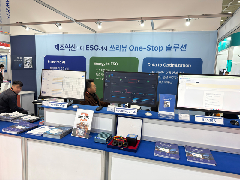 (주)쓰리뷰가 '스마트공장·자동화산업전 2026(Automation World 2026, 이하 AW 2026)'에 참가해 ESG을 실현하는 통합 설비 모니터링 솔루션 Machine365.Ai를 선보였다.