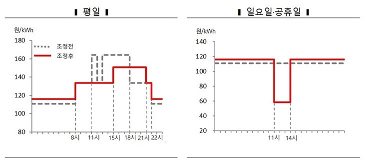 기업의 수요이전 노력에 따라 요금 하락폭은 더 커질 수 있는 바, 특히 요금제 개편 이후 최고요금이 적용되는 평일 저녁 대신 50% 요금 할인이 적용되는 주말 낮 시간으로 조정할 경우 요금 할인 효과가 커질 것으로 예상된다.
