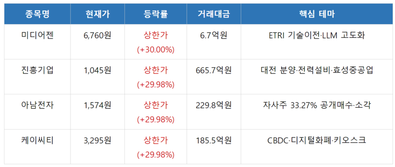 케이씨티 — CBDC·디지털화폐 테마 부각, 외국인 7거래일 연속 순매수 속 상한가