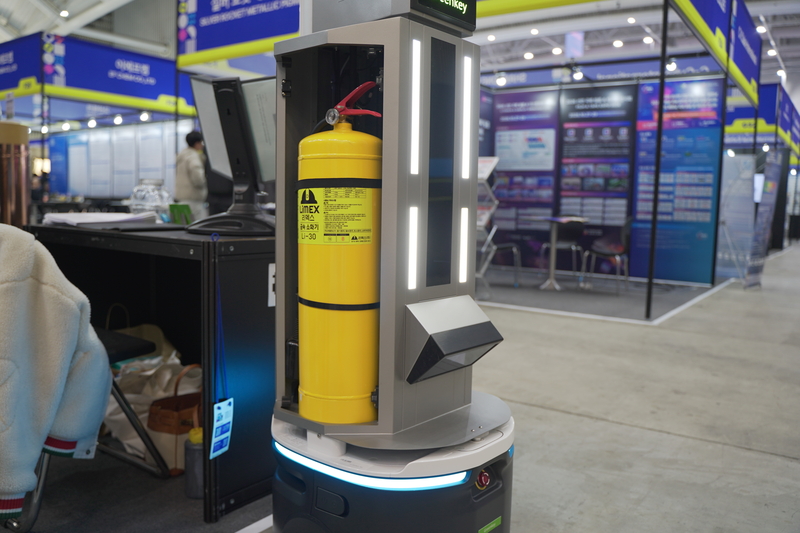 국내 로봇 SI 업체 그린키는 데이터센터와 산업 현장의 이상 징후를 실시간 감지해 재해를 예방하는 관제 로봇을 전시장에서 활동하도록 했다. 적외선 카메라를 탑재해 회로나 설비의 온도 변화를 읽고, 이상 과열 시 경고를 발신하는 기능을 수행한다. 이는 산업 현장 전반으로 확장 적용이 가능하다.