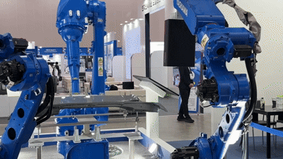 일본 소재 산업용 로봇 제조사 야스카와전기(Yaskawa Electric Corporation)의 합작 법인 ‘두림야스카와’는 자동차 공장 도장 자동화에 특화된 국내 시스템통합(SI) 업체다. 이번 전시의 핵심인 차세대 통합 공정 동기화 도장 시스템 ‘CYNC Painting System’은 공정 길이, 공간 활용, 이송·검사 방식까지 통합한 단일 시스템 솔루션으로 제시됐다.