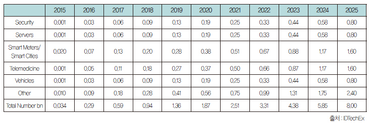 표 1. IP 주소를 가진 사물인터넷의 수 (단위 : 십억 개)