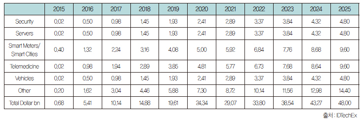 표 2. IP 주소를 가진 사물인터넷 시장 규모 (단위 : 십억 달러)