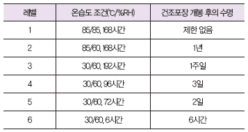 표 1. 수분 민감도 레벨당 온습도 조건 및 개봉 후 수명