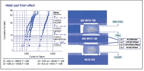 그 결과 SAC305에는 NiAu/NiAu→OSP/OSP→NiAu/OSP= OSP(+SOP)/OSP 순으로 우수한 결과가 나타났다.