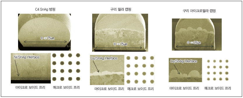 이러한 모습은 다양한 직경과 Mu- shroom 및 In-via 형태, Standard Copper Pillar 및 Micro Capping 전반에 걸쳐 드라이 필름 포토레지스트와 액상 포토레지스트에서 모두 동일하게 관찰됐다(그림 3).