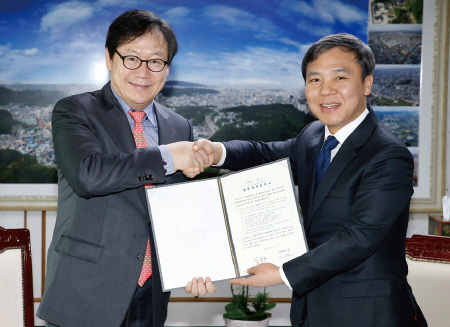 ▲ 김승수 전주시장(오른쪽)과 대림화학 신홍현 대표이사가