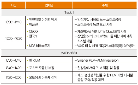 표 1. 2015 스마트공장 국제컨퍼런스Ⅰ(3월18일)