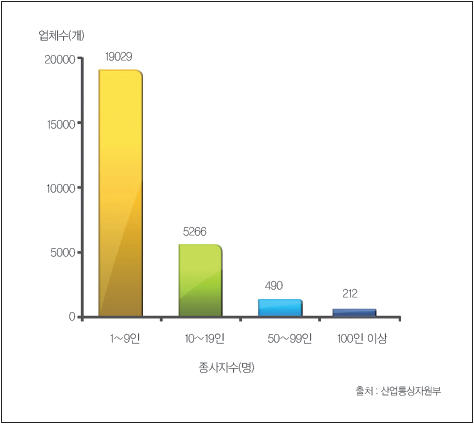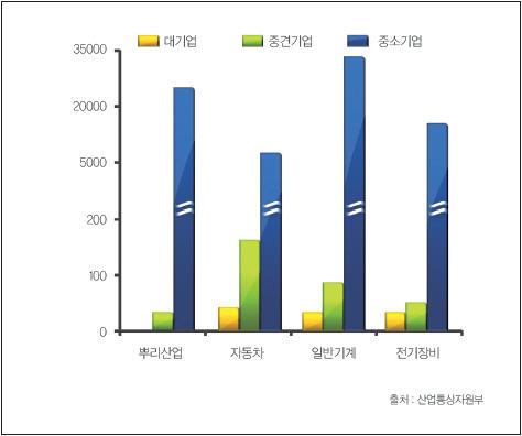 ▲ 그림 5. 산업벌 기업 규모 비교(‘10 통계청)