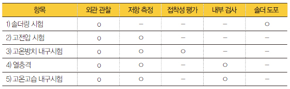 와이어 솔더링 전장품 평가 절차는 표 2와 같다.