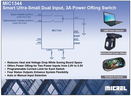 마이크렐은 소형 2mm×2mm QFN 패키지로 제공되는 파워 오링(ORing) 스마트 스위치, MIC1344를 출시했다.