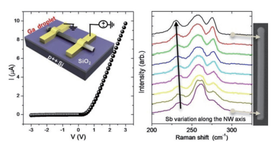 연구팀은 또한 전기적인 측정과 라만 분광학을 이용해 갈륨비소안티몬 나노선의 위치에 따른 전하 농도를 정밀하게 계산한 결과, 전하 농도가 나노선의 축 방향을 따라 선형적으로 변화할 뿐 아니라 나노선 양 끝 부분의 전하 농도 차이가 최대 100배에 이르는 것을 확인했다.