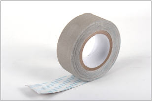 30마이크론 굵기의 은사와 천연, 합성섬유와 합연사로 직조된 원단을 베이스로 하는 전자파 차단 성능 33.8dB∼59.6dB 수준의 전자파 차단용 테이프