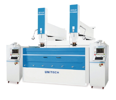 유니테크이디엠의 CNC 방전가공기 U3010-2H는 견고하고 정밀한 더블헤드 방전가공기이다. 좌우 대칭형 몰드 작업 시에 특히 우수한 성능을 발휘하는 모델이다.