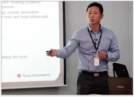 ▲ 안병남 TI코리아 부장이 6일 서울 양재동에서 열린 신제품발표 기자 간담회에서 bq25120 솔루션을 소개하고 있다