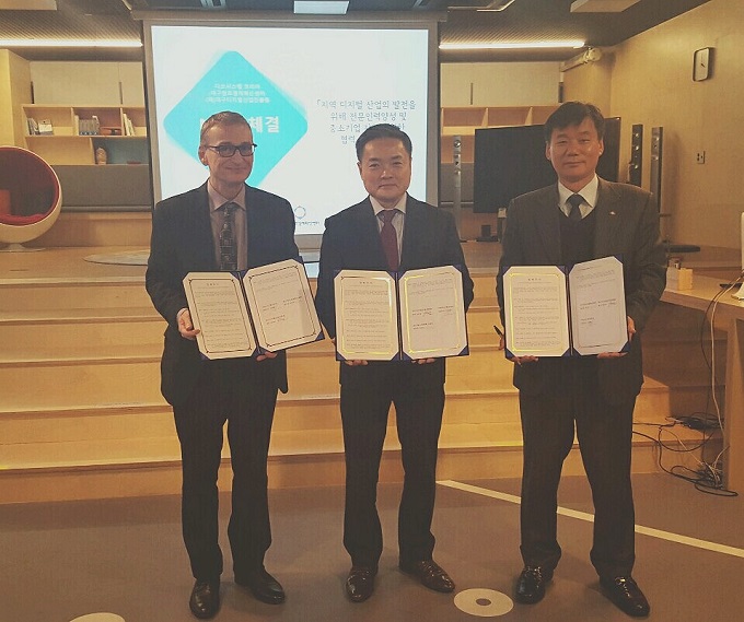 다쏘시스템코리아가 최근 대구창조경제혁신센터에서 대구디지털산업진흥원(원장 양유길) 및 대구창조경제혁신센터(센터장 김선일)와 함께 대구 전략산업의 발전을 위한 디지털 전문인력 양성 및 중소기업 지원에 관한 MOU를 체결했다.