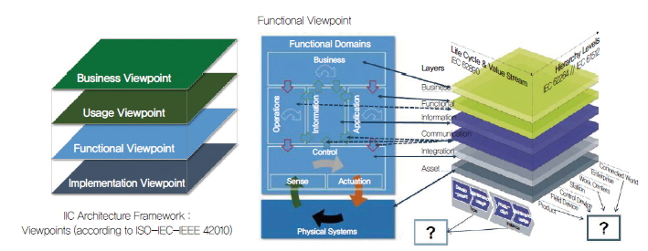그러나 프랑크푸르트에서 RAMI 4.0 개발 전문가이자 IEC TC65 의장인 로렌드 하이델이 발표하길, IIC에서 만들어진 아키텍처의 펑크셔널 뷰포인트는 3차원 아키텍처의 레이어 축에만 해당하고 라이프 사이클 축과 계층 레벨(Hier-archical Level) 축에는 매핑될 수 없기 때문에 여러 가지 부족하지만, RAMI 4.0은 모든 축을 한 그림에 표현할 수 있다고 말했다. 그런 의미에서 RAMI 4.0은 스마트팩토리의 기본적인 아키텍처가 될 것이다.