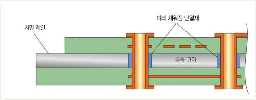 ▲ 그림 2. 열 관리나 치수 제어, 또는 두 가지 모두를 위해 금속 코어를 사용한 다층 회로 보드