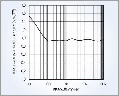 ▲ 그림 14. MAX9632 입력-전압 잡음 밀도 성능(MAX9632 데이터 시트 참고)