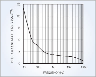 ▲ 그림 15. MAX9632 입력-전류 잡음 밀도 성능(MAX9632 데이터 시트 참고)