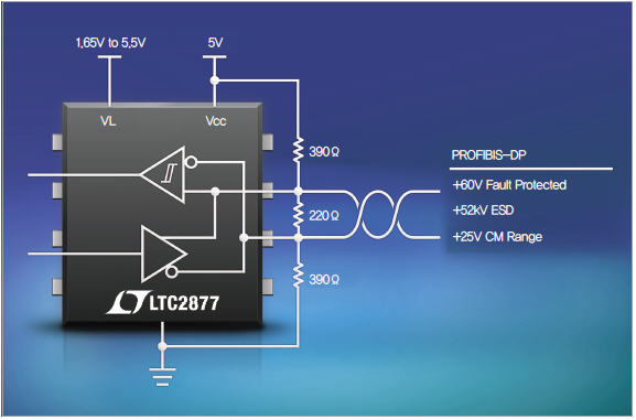 LTC2877은 드라이버 강도를 포함해 RS485와 PROFIBUS-DP 간의 모든 미묘하고 중요한 차이를 정확히 파악해 제품에 구현했다.