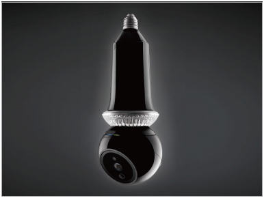 <그림 7>의 제품은 기존의 전구 소켓에 장착할 수 있고, 와이파이 연결이 능한 스마트 카메라다. 카메라 부분을 원격으로 제어하며 원하는 위치의 화면을 볼 수 있는 카메라이다.