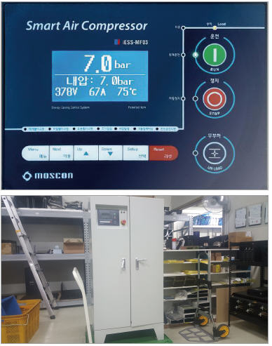 특수 전력 제어장비 제작 업체인 모스콘은 스크류 에어콤프레서의 에너지 손실을 절감할 수 있는 지능형 알고리즘을 개발하여, 이를 접목한 제어시스템 ‘알콘’을 최근 출시했다. 이번 신제품은 무부하 운전에 따른 에너지 손실을 최대 80% 절감했으며 기존 스크류형 에어콤프레서의 모든 장비에 적용 가능하다.